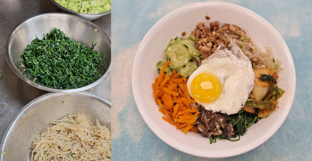 Bibimbap with Korean Mung Bean Sprout Salad and Korean Spinach Salad (Serves 8)