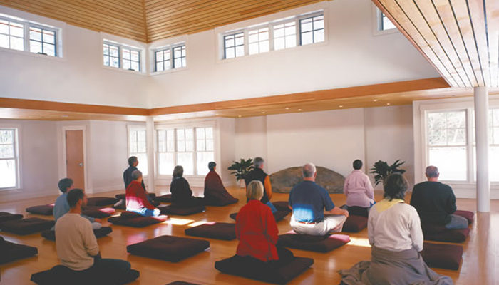 The Forest Refuge meditation hall - a deeply silent space.Fall colors at the Forest Refuge.The Forest Refuge has several rooms for walking meditation.Wild daisies, lupins and other flowers bloom in the spring.Winter walking meditation.Teachers of the 2005 People of Color Retreat. (L to R): Russell Brown, Rachel Bagby, Joseph Goldstein and Gina Sharpe.IMS began offering a People of Color Retreat in 2003.Gaston Pond, near IMS: A favorite yogi sitting place.A group of senior IMS teachers provides dharma guidance and direction to both the Retreat Center and the Forest Refuge.